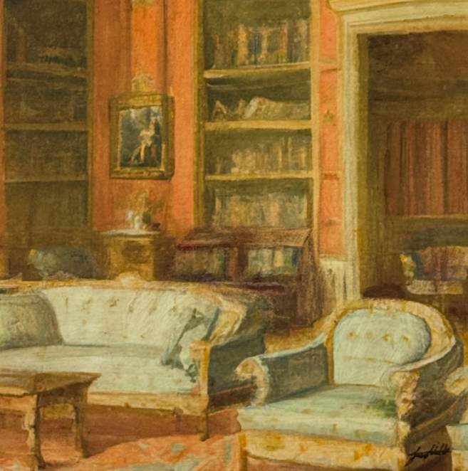 3. Abyssal Ambiance of the Literary Lounge, 2023, Mixed Media (ink, acrylic, pastel, satin varnish) on Stretched Canvas