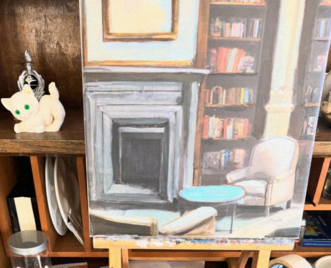 4. Library Liasons, 2024, Mixed Media (ink, acrylic, pastel, satin varnish) on Stretched Canvas